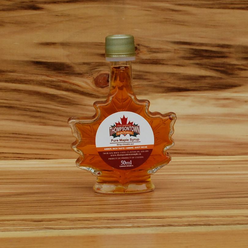 50 mL Glass Leaf Bottle of Thompsontown Pure Maple Syrup